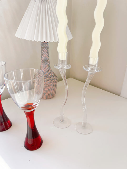 Vintage Wiggle Glass Candlesticks
