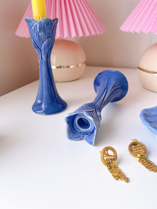 Set Blue Ceramic Tulip Candle Holders