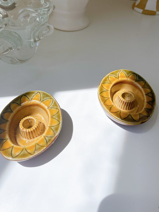 Set 2 Vintage Mustard Metal Candlesticks