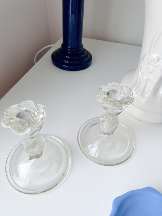 Set Vintage Glass Candleholders