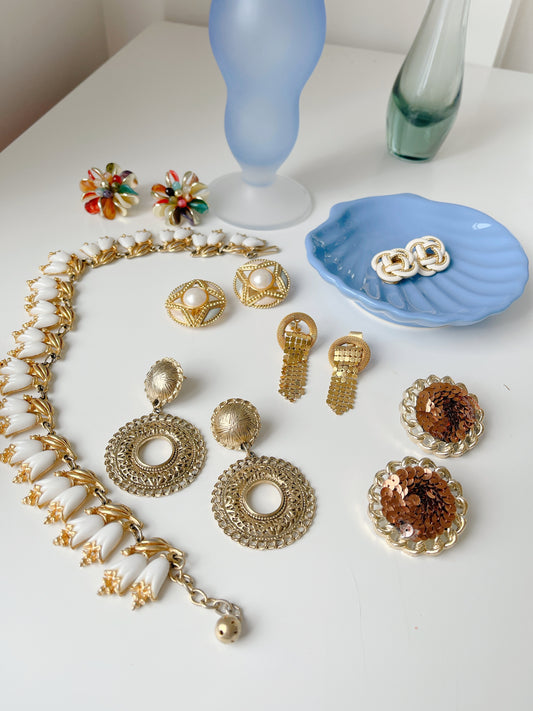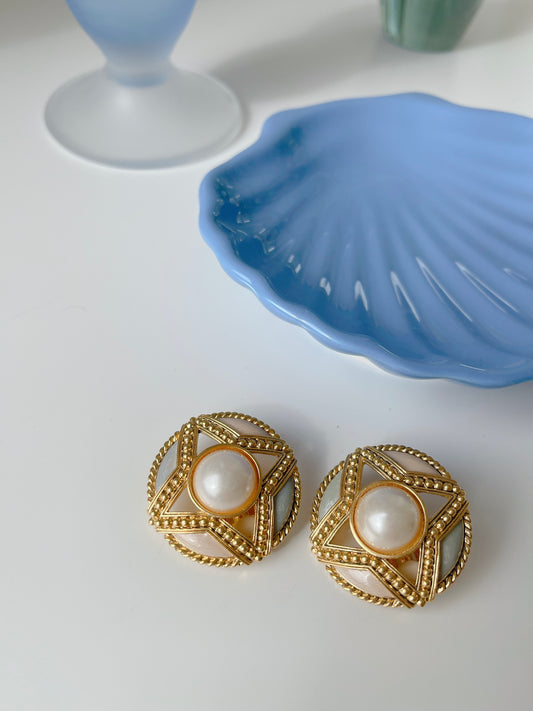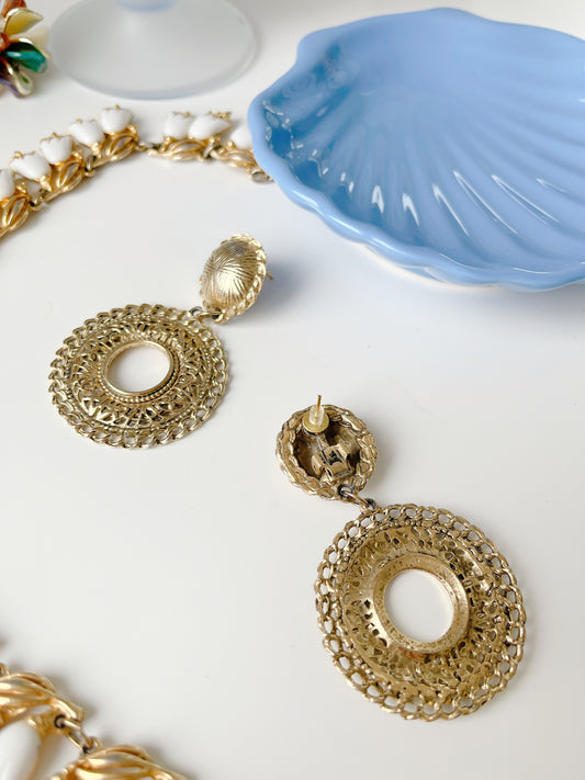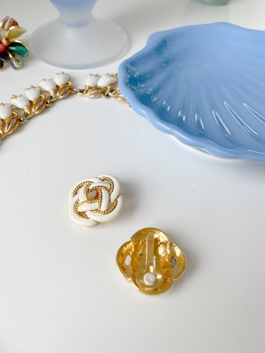 Beautiful Vintage Rope Enamel/Gold Earrings